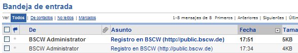 Simultáneamente a lo anterior, el servidor de BSCW ha enviado a la