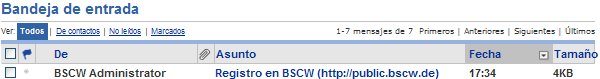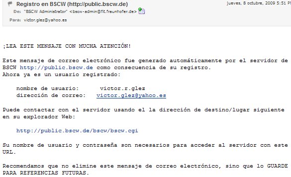 mensajes enviados por BSCW al usuario sólo podrán leerse desde dicha