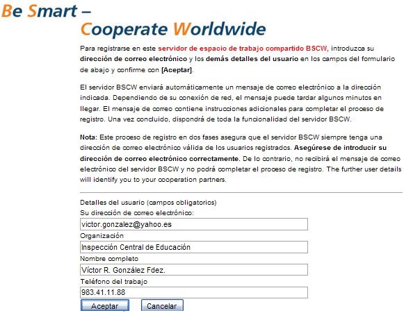 Antes de usar BSCW el interesado debe registrarse como usuario de un