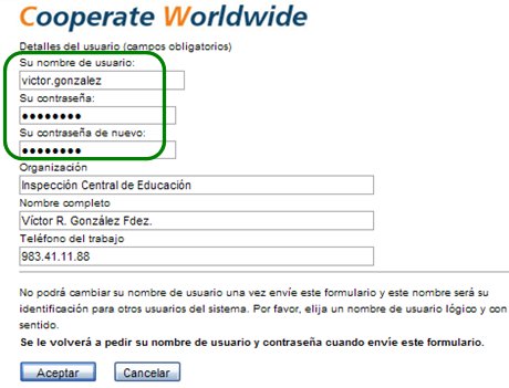 la información personal antes mencionada. Al hacer clic en Aceptar