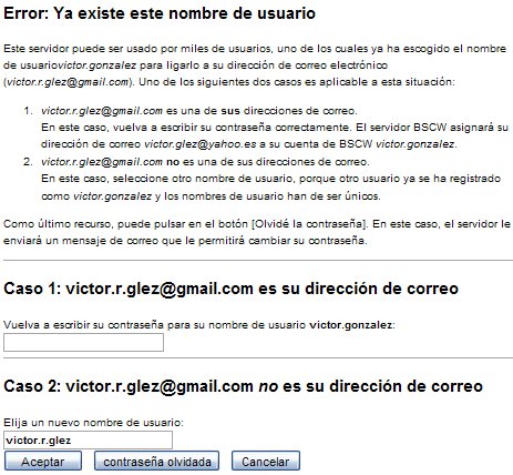 usuario "se da a conocer" al servidor de BSCW, éste se convierte en