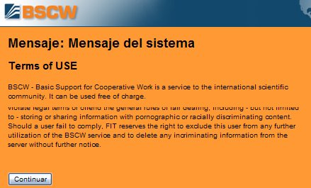 Cuando uno ya es usuario registrado de BSCW debe utilizar el enlace