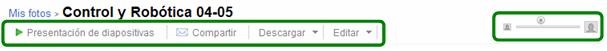 habituales: .jpg, .gif, .png, etc. 1.3 Organización de los álbumesEn la parte superior de cada álbum se presenta una barra de menú con varias funciones: