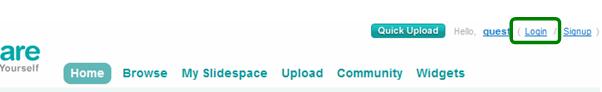 Para volver a entrar en el espacio personal, se debe utilizar el enlace Login (entrar) situado en la cabecera de la página de Slideshare: